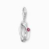 Thomas Sabo Silver charm pendant with two linked rings and a red stone