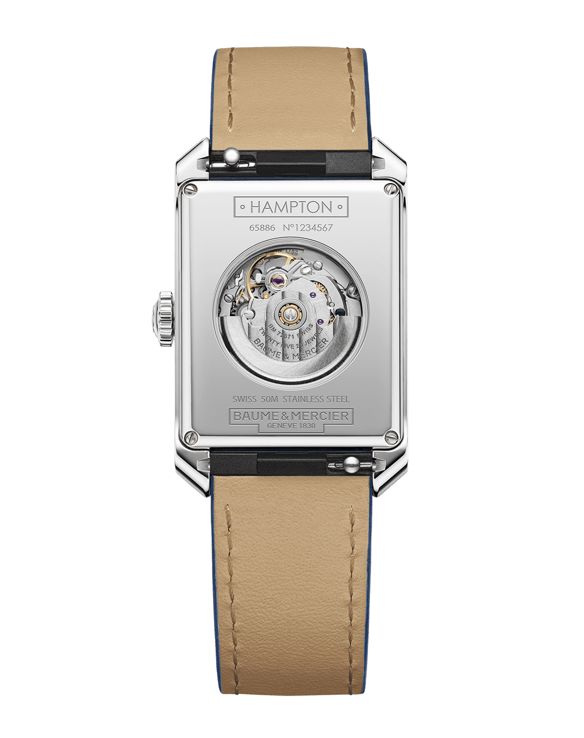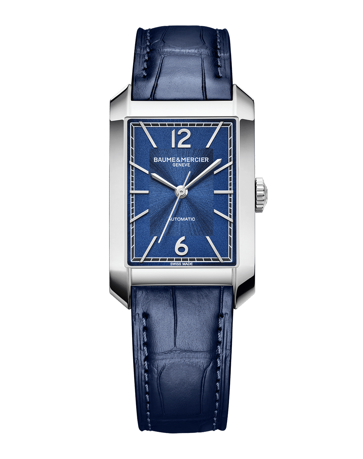 Denne klassiske modellen fra Baume & Mercier har en rektangulær kasse på 27 mm og kommer med blå alligator rem. Klokken har safirglass og er vanntett til 50 meter. Uret har en nydelig blå urskive som står i stil med den blå alligator remmen. I denne modellen sitter det et ETA 2671 urverk, som har en gangreserve på 38 timer.