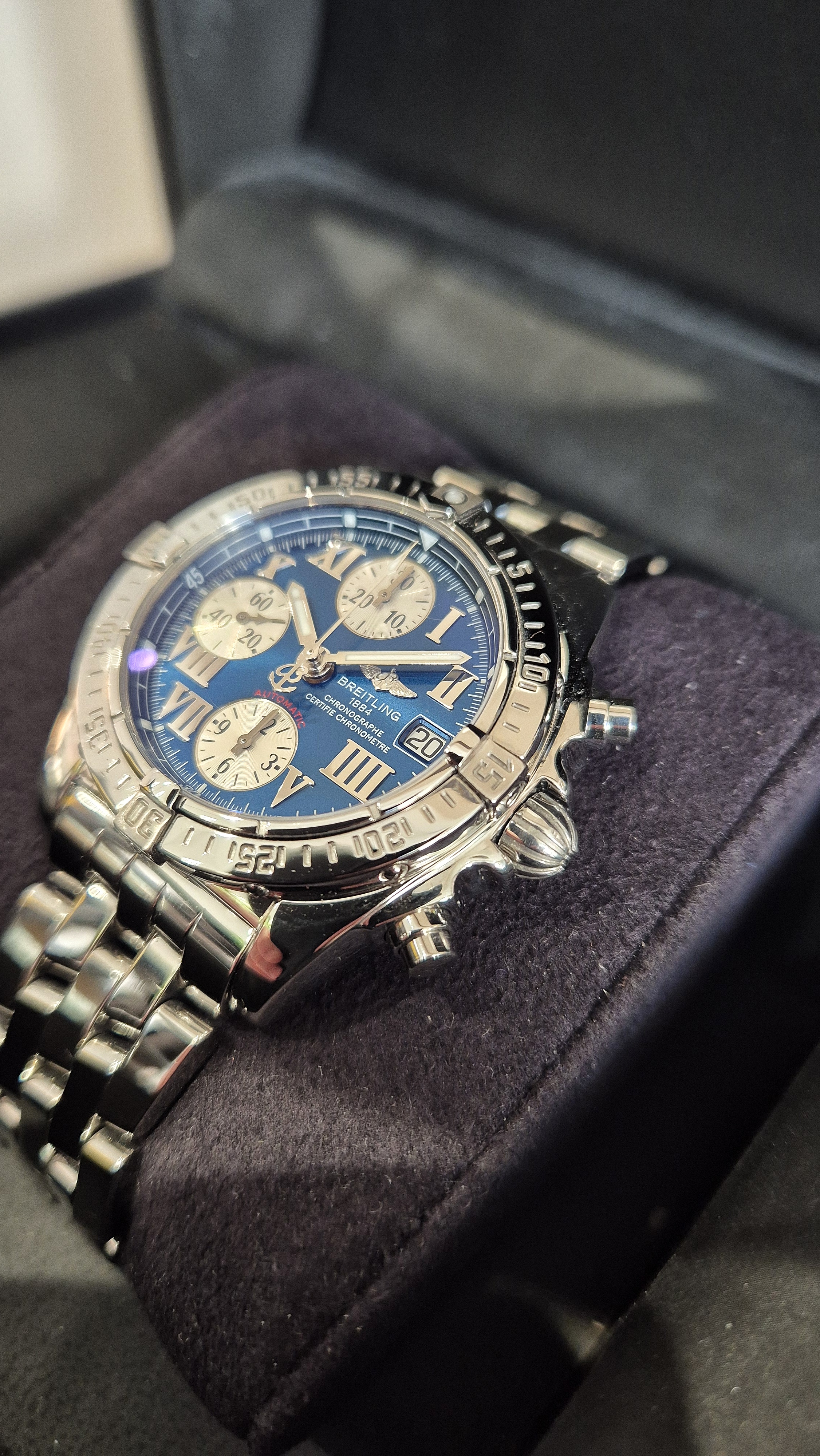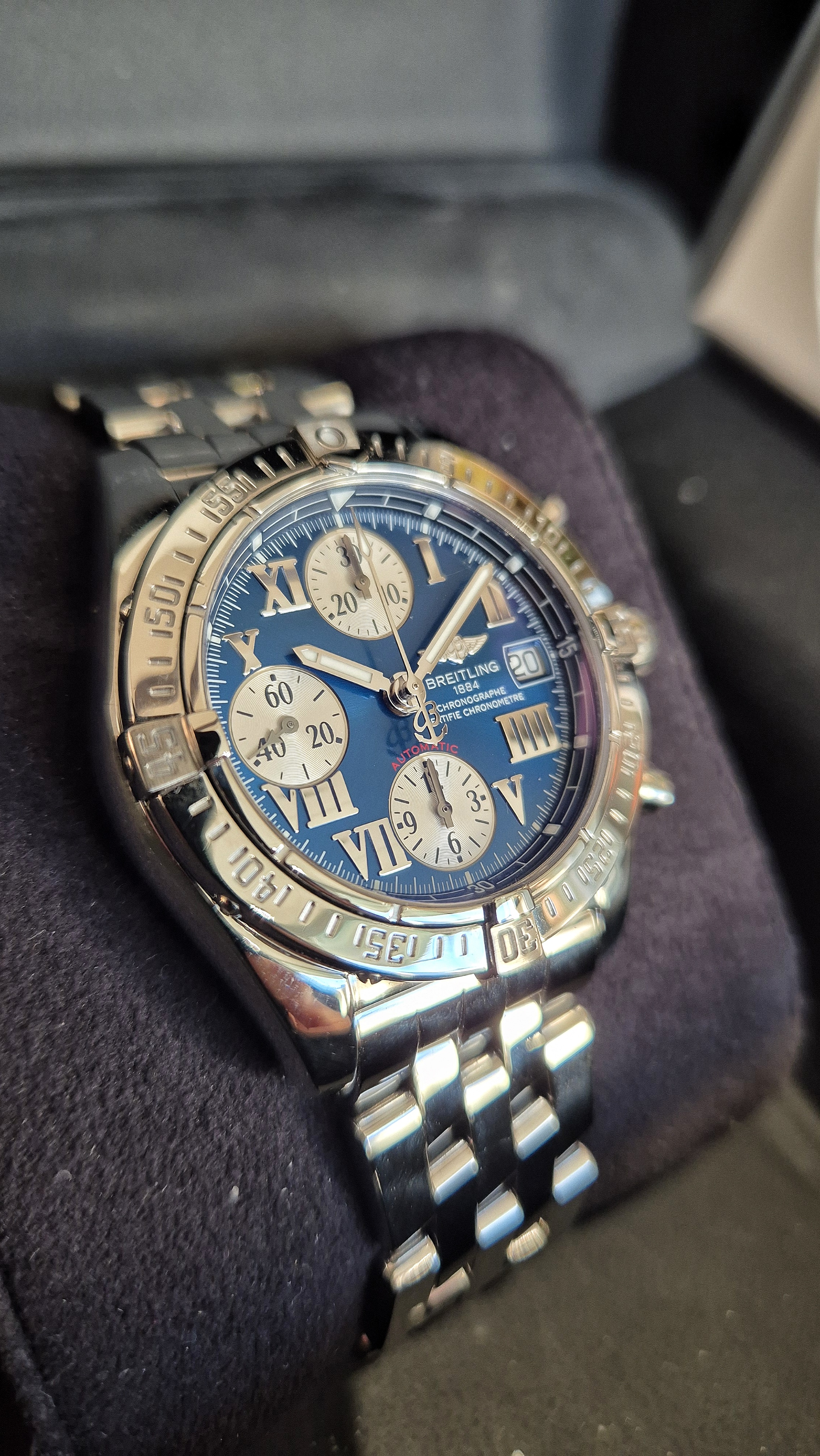 Breitling Chrono Cockpit A13358 – Blå urskive (Service + Boks)