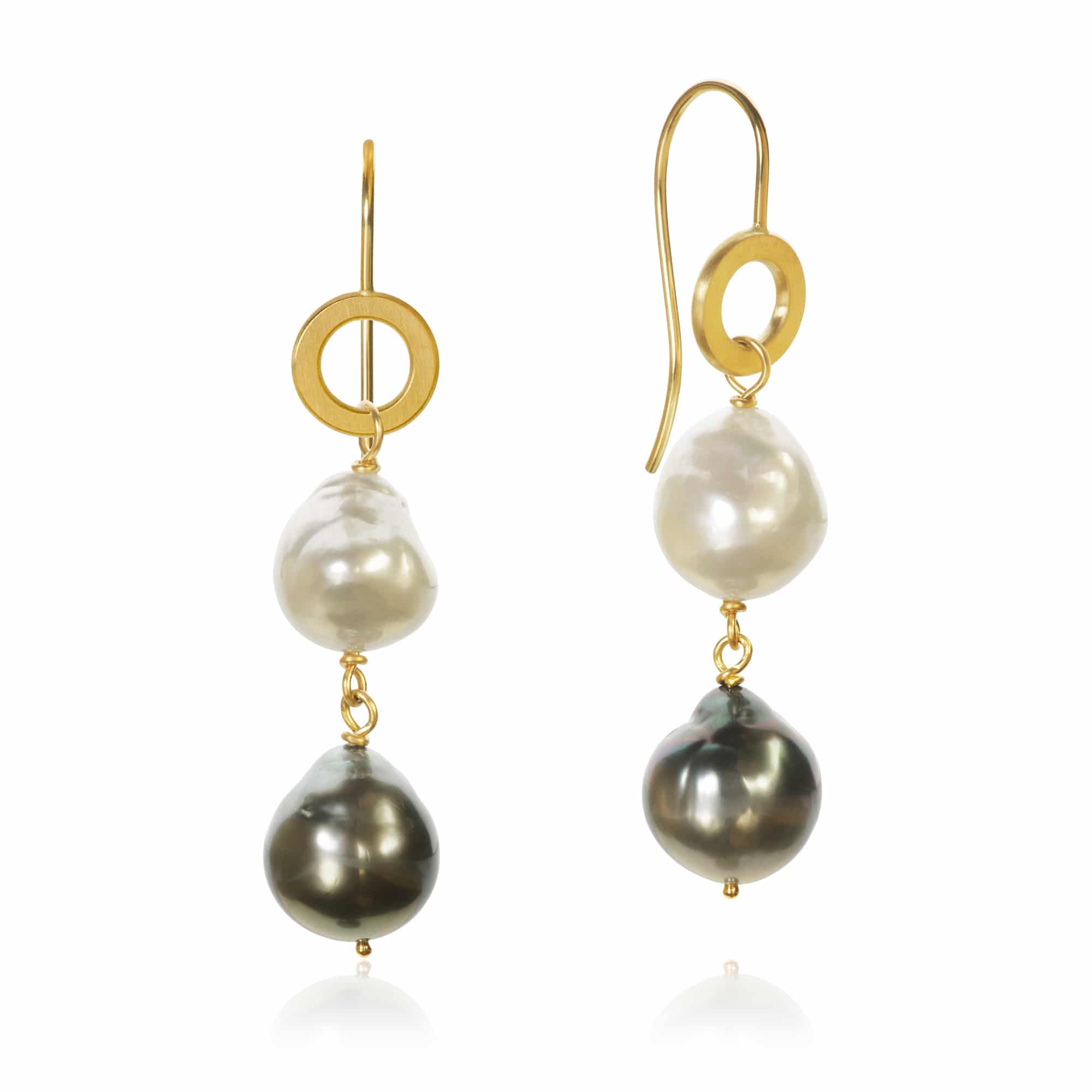 Ørepynt i 18 k gult gull med de vakre tahitiperle og sørhavsperle.